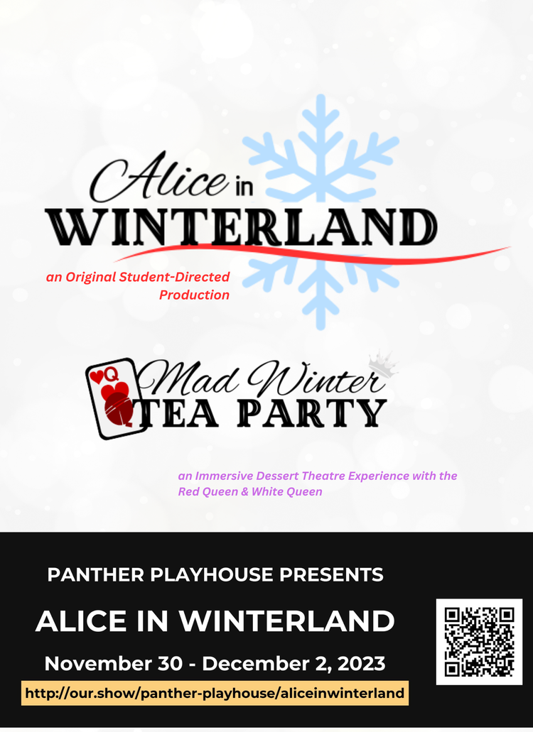 A whimsical winter reimagining of Alice in Wonderland, this production was entirely led by students, from directing and design to fundraising and tech. Blending fantasy with family appeal, it was performed alongside the 'Mad Winter Tea Party'—a creative fundraiser combining performance and immersive hospitality.