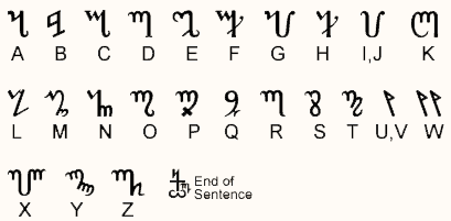 As a backup, I decided to use the Theban alphabet. For those who've never heard of this type of script, it originated in the 16th Century and has been known as the Witch's Alphabet, although there's no connection between the alphabet and witches before the 20th century.